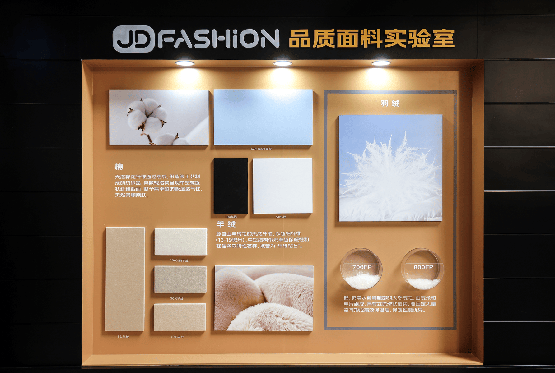 服饰行业最古老的难题,就是信息不对称导致的巨大摩擦成本。因此,建立可量化的行业标准是构建信任的第一步。京东JD FASHION搭建建立了一个「安心品质」标准体系,联合国家级质检机构,对服饰品类的面料、工艺、功能进行量化分级,每一件打标商品都附带权威质检报告,让品质有据可查。目前安心品质标准已覆盖了包括羽绒服、毛呢大衣、冲锋衣、牛仔裤、内裤、童装、文胸、鞋类等大部分服饰品类。